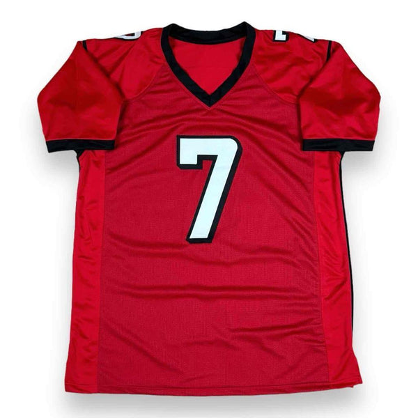 This signed item is brand new without tags or logos. This custom jersey is sewn in a size Large / XL. All the letters and numbers are sewn on! This item will make a great gift or a great addition to any collection at an AFFORDABLE PRICE! ATHLETE: Michael Vick ITEM: Custom Sewn Jersey AUTHENTICATION: This item comes with a James Spence Authentication (JSA) serial #'ed hologram affixed to the item. To ensure authenticity, the hologram can be reviewed online. This process helps to ensure that the product purchased is authentic and eliminates any possibility of duplication or fraud. NOTE: All of our autographed jerseys are custom jerseys, unless otherwise noted. Our custom jerseys are NON-BRANDED, have NO logos, NO tags, NO patches, NO emblems. All letters and numbers are SEWN-ON. The non-branded jerseys are made specifically for the player(s) to sign, for collectible purposes.