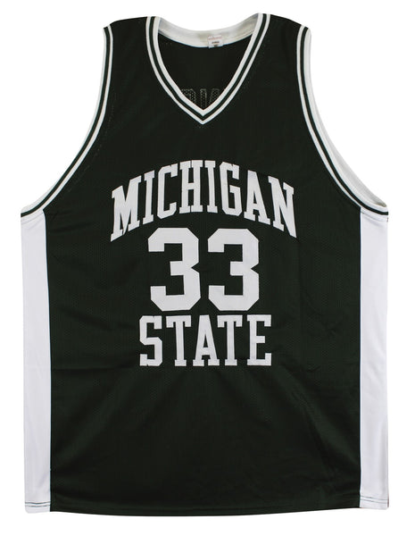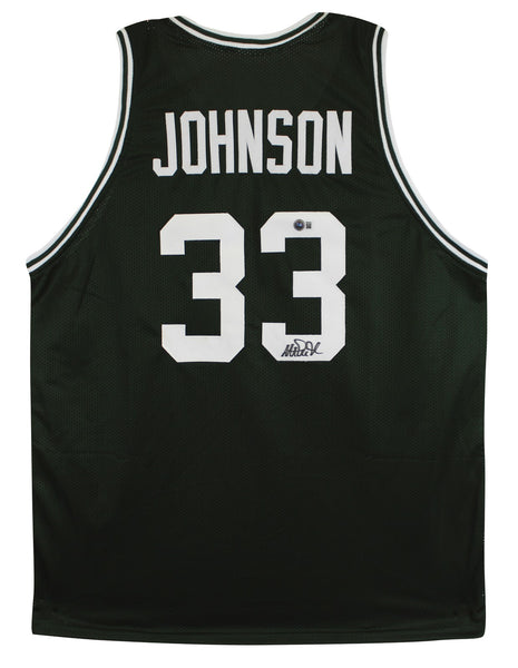 This Autographed Green Pro Style Jersey has been Personally Signed by Magic Johnson of the Michigan State Spartans. This item is 100% Authentic to include a hologram by Beckett Authentication Services. This item will come with an affixed Beckett Authentication Services (BAS) authentication sticker, which includes a scannable QR code to verify authenticity. Please note that Beckett no longer provides serial-numbered COA cards, and the attached BAS sticker will serve as the complete authentication for this item. This is a BAS Witnessed Protection Program item which means a Beckett Authentication Service representative was present when this item was being signed. We conducted an autograph signing with Magic Johnson where multiples of the same item were signed. While the photographs are representative of this item, the size, placement and strength of the signature may vary. Each item is hand signed, therefore, each autograph is unique. This item can be verified through BAS Witnessed. This is a X-Large sized, non-branded, custom-stitched Jersey.