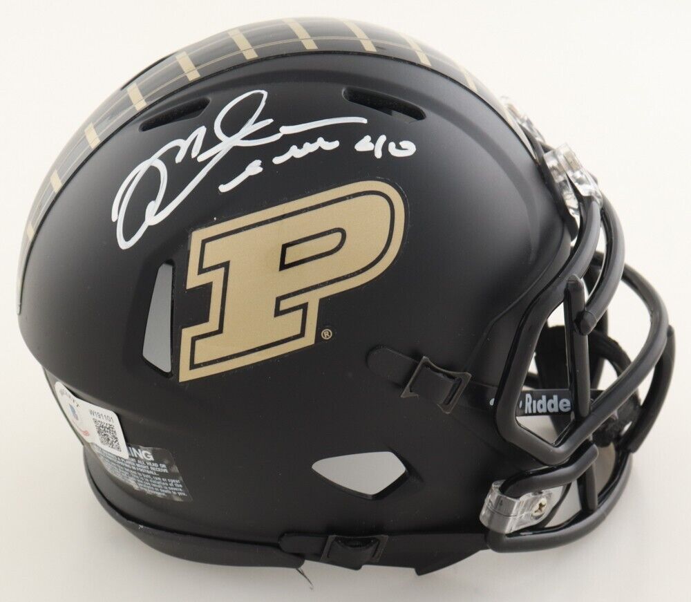 Riddell Purdue Boilermakers speed mini helmet. Hand-signed by Mike Alstott.The autograph includes an official Beckett Authentication Services serially numbered hologram for authenticity purposes. The signing of this item was witnessed by Beckett.Authentication: Beckett Hologram