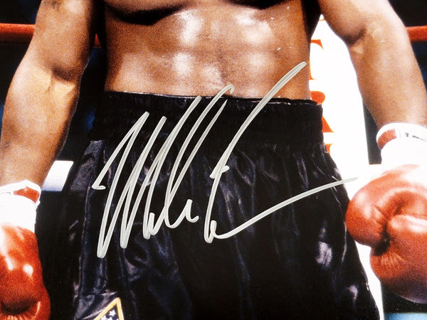 This is a 16x20 Photo that has been hand signed by Mike Tyson. This item has been certified authentic by Beckett Authentication (BAS) and comes with their tamper-proof sticker. Beckett Authentication has recently changed their physical certificate card policy where they no longer match their tamper-proof sticker with a physical certificate. If the item features a Beckett Authenticated QR Code, the item does NOT come with a matching certificate. A certificate can be printed on Beckett's website for the matching authentication number.