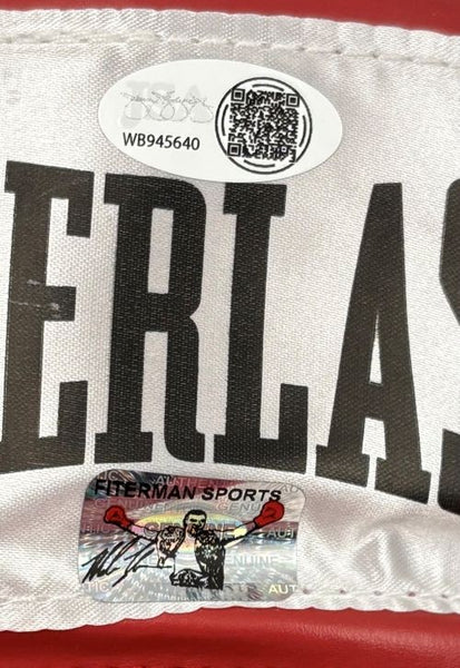 Featured is a Mike Tyson signed Everlast boxing glove. This glove has been hand signed by Tyson and comes with the JSA witnessed QR hologram. Included with this glove is a deluxe acrylic display case. This glove would make a great addition to any sports memorabilia collection! SPECIFICATIONS Autographed By: Team: Boxing Sport: Boxing Authentication: James Spence Authentication (JSA)