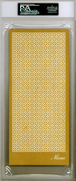 This is a 4x9 United Airlines Menu that has been hand signed by Muhammad Ali. It has been certified authentic by PSA/DNA and comes encapsulated in their tamper-proof holder.
