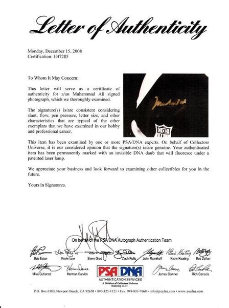 This is a 11x14 Photo that has been hand signed by Muhammad Ali. It has been certified authentic by PSA/DNA and comes with their sticker and matching full page certificate of authenticity.