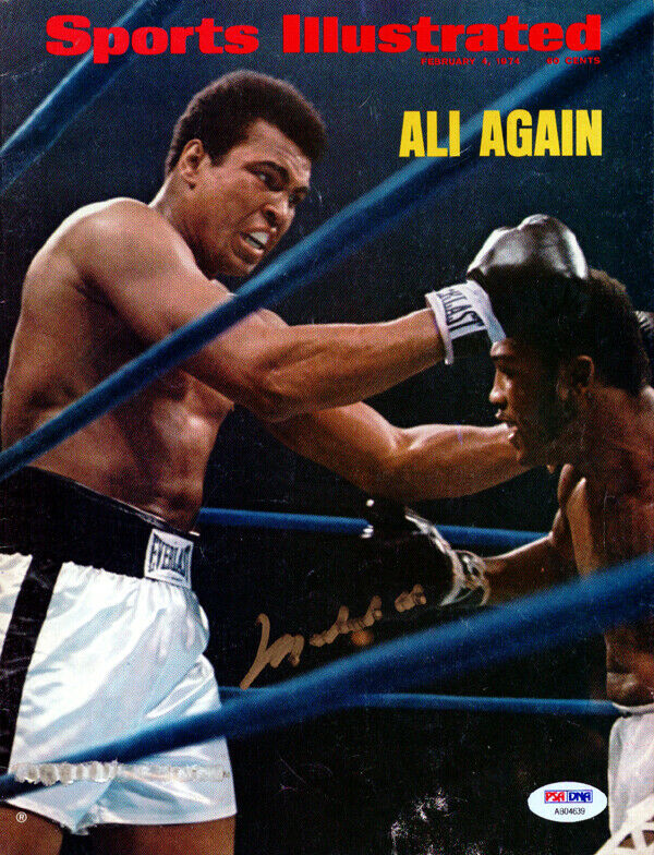 This is a Sports Illustrated Magazine that has been hand signed by Muhammad Ali. It has been certified authentic by PSA/DNA and comes with their sticker and matching full page certificate of authenticity.