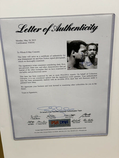 This photo custom framed to 18x29 has been personally hand signed by Muhammad Ali & Ken Norton100% authentic Certificate of Authenticity by PSA/DNA