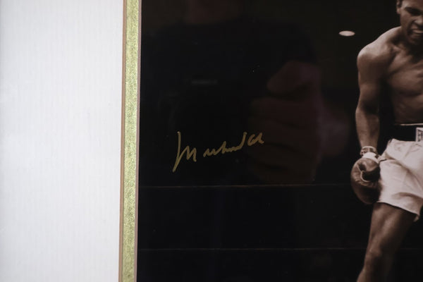 This product is an autographed 8x10 photo framed, featuring the legendary boxer Muhammad Ali. The autograph is authenticated by Stacks of Plaques, adding to the authenticity and value of the item. This unique piece would make a valuable and cherished item for any boxing fan or collector of sports memorabilia. With a Certificate of Authenticity, buyers can be confident in the legitimacy of this piece of history.