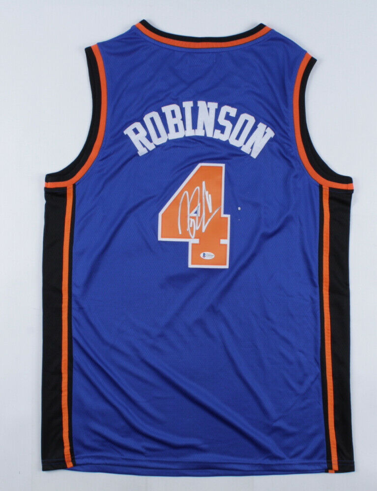 Mitchell & Ness Hardwood Classic NBA on-court style jersey. Everything is sewn on, size L. Hand-signed by Nate Robinson (New York Knicks) Please note, there is a stain on the back of the jersey, See Photo. In July 2020, it was announced Robinson would be venturing into boxing for a professional debut, facing YouTuber Jake Paul as part of the undercard for the Mike Tyson vs. Roy Jones Jr. exhibition match. The event was initially scheduled for September 12 at the Dignity Health Sports Park in Carson, California however, in August, Tyson revealed the event had been pushed back to November 28 in order to maximize revenue. Robinson lost to Paul by second-round Knockout. The lot / autograph(s) includes an official Beckett Authentication Services serially-numbered hologram and matching COA for authenticity purposes. The signing of this item was witnessed by Beckett.Authentication: Beckett COA