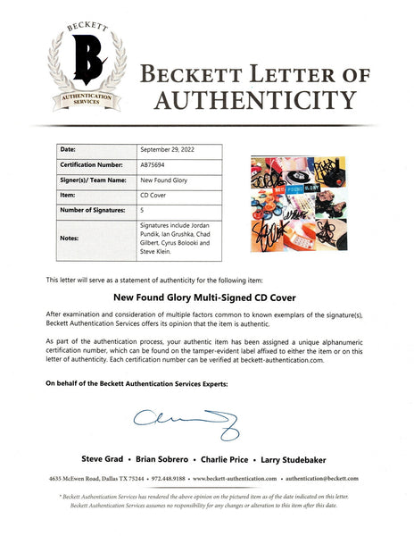 New Found Glory Autographed CD Cover With CD Compact Disc Beckett Authenticated