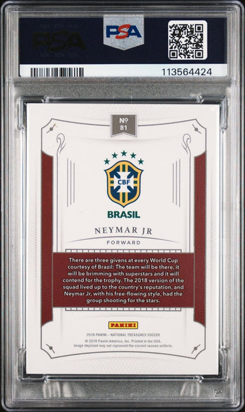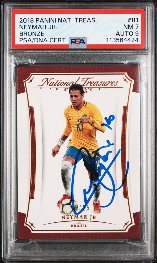 This is a Neymar Jr Signed 2018 Panini National Treasures Bronze /25 - PSA 7 AUTO 10. THE ITEM IN THE PICTURE IS A STOCK IMAGE. YOU WILL RECEIVE AN IDENTICAL ITEM OF EQUAL QUALITY. ALL JERSEYS ARE SIZE LARGE. Every item of signed memorabilia we sell is official and of the highest quality. We pride ourselves on providing sports fans with the most exclusive signed memorabilia on the market. We are an industry leading signed memorabilia company who can guarantee 100% authenticity on every signature we sell. The item you receive will be identical to the one you are seeing in the stock pictures. This includes the item, the authentication company, signature color and signature placement. We take pride in ensuring the authenticity of all our items. With unwavering commitment, we guarantee that every signature is 100% authentic. Every item of signed memorabilia comes with a scannable barcode which takes you to the certificate of authenticity on the company's website. These industry leading authentication companies include Beckett Authentication Services, James Spencer Authentication Services and Professional Sports Authentication Services.