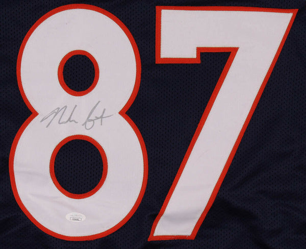 Custom on-field style jersey. Everything is sewn on, size XL and is hand-signed in silver paint pen by Noah Fant.The autograph includes an official James Spence Authentication (JSA) hologram and matching COA for authenticity purposes.Authentication: JSA COA