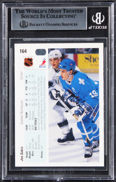 This Autographed 1981 Topps #W83 Card has been Personally Signed by Joe Sakic of the Quebec Nordiques. This item is 100% Authentic, it comes slabbed and authenticated by Beckett Authentication Services. The authenticity can be verified on Beckett Authentication Services website.