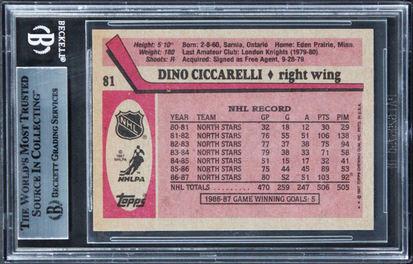 North Stars Dino Ciccarelli Authentic Signed 1987 Topps #81 Card BAS Slabbed