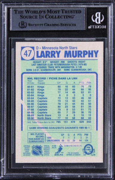 This Autographed 1990 O-Pee-Chee #47 Card has been Personally Signed by Larry Murphy of the Minnesota North Stars. This item is 100% Authentic, it comes slabbed and authenticated by Beckett Authentication Services. We have multiples of this same item. While the photographs are representative of this item, the size, placement and strength of the signature may vary. Each item is hand signed, therefore, each autograph is unique.