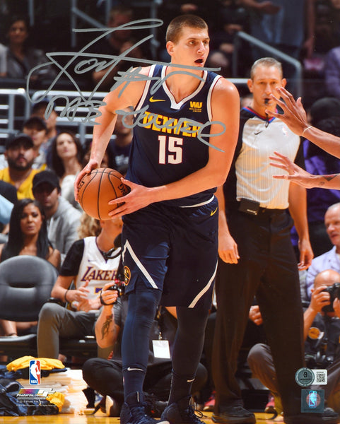 This Autographed 11x14 Photo with the inscription of "The Joker" has been Personally Signed by Nikola Jokic of the Denver Nuggets. This item is 100% Authentic to include a Certificate of Authenticity (COA) / hologram by Beckett Authentication Services. The authenticity can be verified on Beckett Authentication Services website.