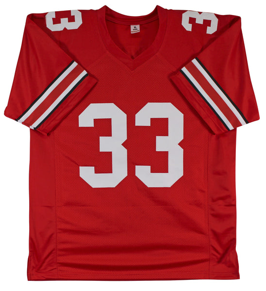 This Autographed Red Pro Style Jersey has been Personally Signed by Jack Sawyer of the Ohio State Buckeyes. This item is 100% Authentic to include a hologram by Beckett Authentication Services. This item will come with an affixed Beckett Authentication Services (BAS) authentication sticker, which includes a scannable QR code to verify authenticity. Please note that Beckett no longer provides serial-numbered COA cards, and the attached BAS sticker will serve as the complete authentication for this item. This is a BAS Witnessed Protection Program item which means a Beckett Authentication Service representative was present when this item was being signed. We conducted an autograph signing with Jack Sawyer where multiples of the same item were signed. While the photographs are representative of this item, the size, placement and strength of the signature may vary. Each item is hand signed, therefore, each autograph is unique. This item can be verified through BAS Witnessed. This is a X-Large sized, non-branded, custom-stitched Jersey.