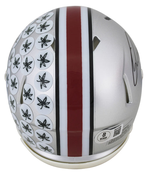 This Autographed Speed Mini Helmet W/ Uv Mirrored Back Acrylic Display Case has been Personally Signed by Quinshon Judkins of the Ohio State Buckeyes. This item is 100% Authentic to include a hologram by Beckett Authentication Services. This item will come with an affixed Beckett Authentication Services (BAS) authentication sticker, which includes a scannable QR code to verify authenticity. Please note that Beckett no longer provides serial-numbered COA cards, and the attached BAS sticker will serve as the complete authentication for this item. This is a BAS Witnessed Protection Program item which means a Beckett Authentication Service representative was present when this item was being signed. We conducted an autograph signing with Quinshon Judkins where multiples of the same item were signed. While the photographs are representative of this item, the size, placement and strength of the signature may vary. Each item is hand signed, therefore, each autograph is unique. This item can be verified through BAS Witnessed.