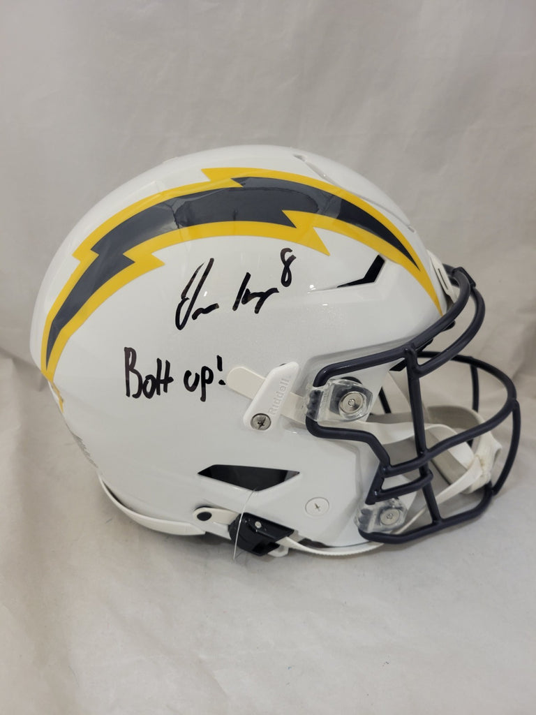 OMARION HAMPTON AUTOGRAPHED LOS ANGELES CHARGERS FULL SIZE COLOR RUSH - NAVY SPEEDFLEX AUTHENTIC HELMET"BOLT UP" INSCRIPTIONBECKETT QR HOLOGRAMTHIS MEANS THE HELMET WAS SIGNED WITH A BECKETT REPRESENTATIVE PRESENT SO YOU CAN BE 100% CERTAIN ITS THE REAL THING.