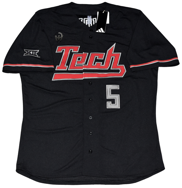 Patrick Mahomes, former star quarterback for the Texas Tech Red Raiders, has hand signed this black Adidas baseball jersey at a private signing. Jersey is new with tags attached and all letters/numbers are sewn-on. This item is authenticated by Beckett Authentication Services and was signed in the presence of one of their representatives. Their tamper-evident hologram featuring a QR code and serial number is on the item. The authenticity can be verified online by entering the serial number or scanning the QR code.Item pictured may not be the exact item you will receive. It will be similar quality, and we guarantee your satisfaction.