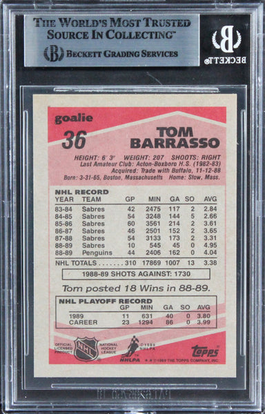 This Autographed 1989 Topps #36 Card has been Personally Signed by Tom Barrasso of the Pittsburgh Peguins. This item is 100% Authentic, it comes slabbed and authenticated by Beckett Authentication Services. The authenticity can be verified on Beckett Authentication Services website.