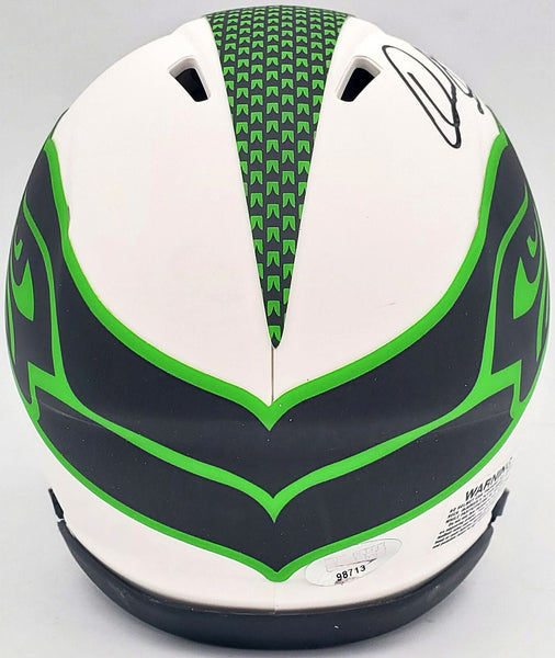 This is a Seattle Seahawks Lunar Eclipse White Speed Mini Helmet that has been hand signed by Quandre Diggs. The Eclipse helmets are very delicate and often have some marks or scratches on them. This item was signed in the presence of a Mill Creek Sports representative and comes with their serial numbered hologram and matching certificate of authenticity.