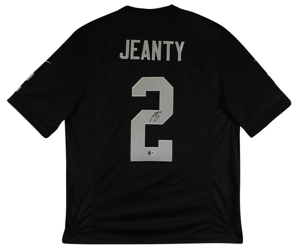 This Autographed Black Nike Limited Jersey has been Personally Signed by Ashton Jeanty of the Las Vegas Raiders. This item is 100% Authentic to include a hologram by Beckett Authentication Services. This item will come with an affixed Beckett Authentication Services (BAS) authentication sticker, which includes a scannable QR code to verify authenticity. Please note that Beckett no longer provides serial-numbered COA cards, and the attached BAS sticker will serve as the complete authentication for this item. This is a BAS Witnessed Protection Program item which means a Beckett Authentication Service representative was present when this item was being signed. We conducted an autograph signing with Ashton Jeanty where multiples of the same item were signed. While the photographs are representative of this item, the size, placement and strength of the signature may vary. Each item is hand signed, therefore, each autograph is unique. This item can be verified through BAS Witnessed. This is a X-Large sized Jersey.