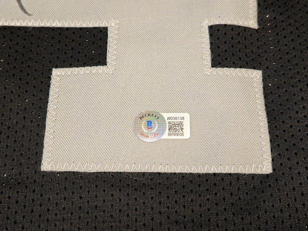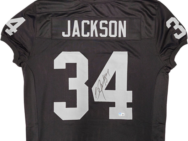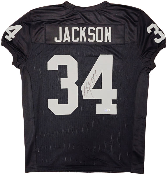 This is a Black Pro Cut Jersey that has been hand signed by Bo Jackson. This is a custom jersey with no name brand. The approximate size is XL. It has nice sewn in name and numbers. This item has been witnessed and certified authentic by Beckett Authentication (BAS) and comes with their tamper-proof witness sticker.