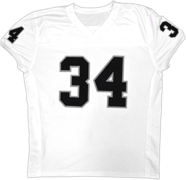 This is a White Pro Cut Jersey that has been hand signed by Bo Jackson. This is a custom jersey with no name brand. The approximate size is XL. It has nice sewn in name and numbers. This item has been witnessed and certified authentic by Beckett Authentication (BAS) and comes with their tamper-proof witness sticker.