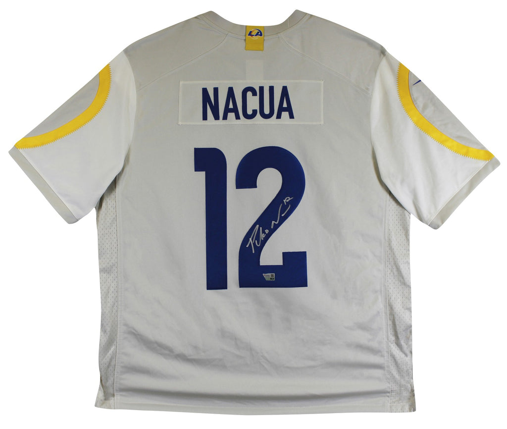 This Autographed Bone Nike Limited Jersey has been Personally Signed by Puka Nacua of the Los Angeles Rams. This item is 100% Authentic to includes a numbered hologram by Fanatics. We conducted an autograph signing with Puka Nacua where multiples of the same item were signed. While the photographs are representative of this item, the size, placement and strength of the signature may vary. Each item is hand signed, therefore, each autograph is unique. This item can be verified through Fanatics. Multiple sizes available. Reach out for availability.