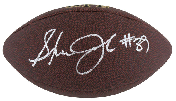 This Autographed Wilson Super Grip Nfl Football has been Personally Signed by Steven Jackson of the St. Louis Rams. This item is 100% Authentic to include a hologram by Beckett Authentication Services. This item may come with the new Beckett Authentication hologram that has a scannable QR code rather than the traditional COA. If you would like to have a COA, you are welcome to reach out to Beckett for a printed certification once you receive your item. This is a BAS Witnessed Protection Program item which means a Beckett Authentication Service representative was present when this item was being signed. We conducted an autograph signing with Steven Jackson where multiples of the same item were signed. While the photographs are representative of this item, the size, placement and strength of the signature may vary. Each item is hand signed, therefore, each autograph is unique. This item can be verified through BAS Witnessed.