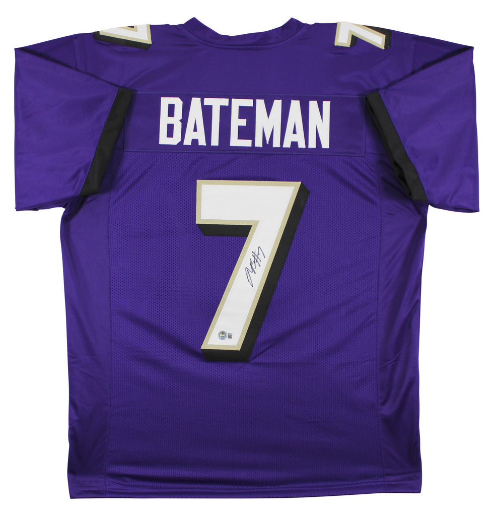 This Autographed Purple Pro Style Jersey has been Personally Signed by Rashod Bateman of the Baltimore Ravens. This item is 100% Authentic to include a hologram by Beckett Authentication Services. This item will come with an affixed Beckett Authentication Services (BAS) authentication sticker, which includes a scannable QR code to verify authenticity. Please note that Beckett no longer provides serial-numbered COA cards, and the attached BAS sticker will serve as the complete authentication for this item. This is a BAS Witnessed Protection Program item which means a Beckett Authentication Service representative was present when this item was being signed. We conducted an autograph signing with Rashod Bateman where multiples of the same item were signed. While the photographs are representative of this item, the size, placement and strength of the signature may vary. Each item is hand signed, therefore, each autograph is unique. This item can be verified through BAS Witnessed. This is a X-Large sized Jersey.