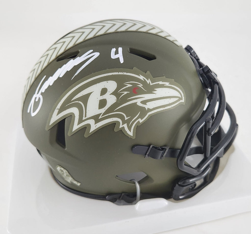Riddell 2022 SALUTE TO SERVICE Speed Mini Helmet hand signed by Baltimore Ravens wide receiver ZAY FLOWERS The signature is in White paint pen. This would make a great addition to any Ravens collection. This item is guaranteed to be 100% authentic and will include a COA hologram from Beckett Authentication.