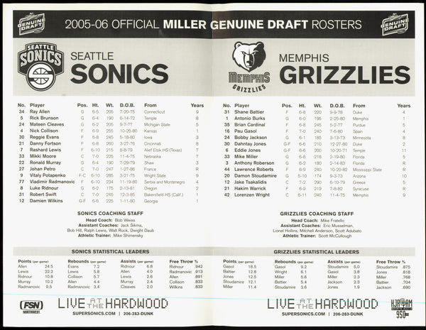 This is a 8x10 Seattle Supersonics Pamphlet that has been hand signed by Ray Allen. This item has been certified authentic by Beckett Authentication (BAS) and comes with their tamper-proof QR Code hologram.