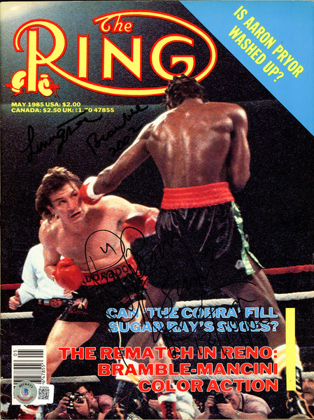 This is a Ring magazine that has been hand signed by Ray "Boom Boom" Mancini & Livingstone Bramble. This item has been certified authentic by Beckett Authentication (BAS) and comes with their tamper-proof hologram.