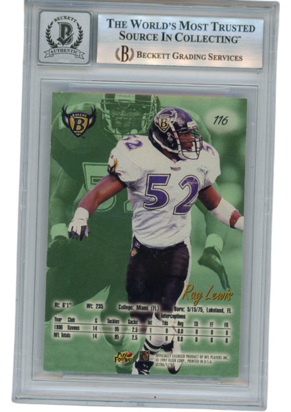 Ray Lewis Autographed 1997 Fleer Ultra #116 Trading Card Beckett 53021