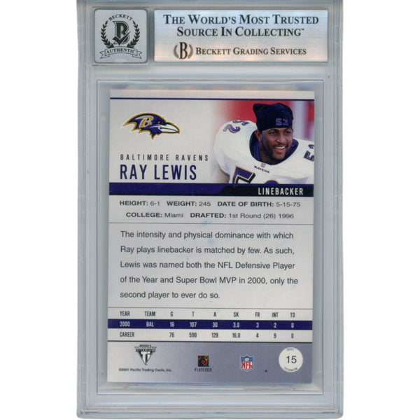 Ray Lewis Autographed 2001 Pacific Private Stock #15 Trading Card Beckett 53040
