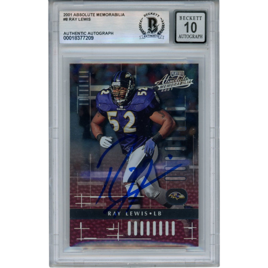 Ray Lewis Autographed 2001 Playoff Absolute #8 Trading Card Beckett 52961