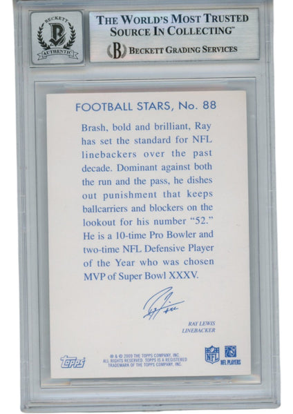 The number in the listing title is just an inventory sku for our records and is not the authentication number. The item pictured is the exact item you will receive, please see photos for condition. This is a Baltimore Ravens 2009 Topps Chronicle #88 Slabbed Trading Card that was personally autographed by Ray Lewis. Includes a certificate of authenticity / hologram from Beckett Authentication Services (BAS) and Denver Autographs. FREE SHIPPING within the USA on orders over $10!
