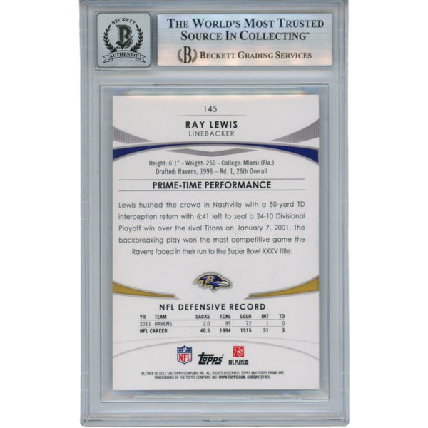 Ray Lewis Autographed 2012 Topps Prime #145 Trading Card Beckett 52948