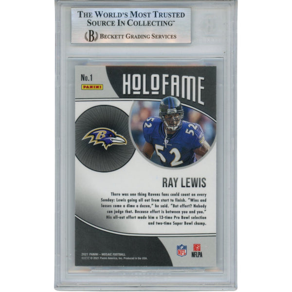 Ray Lewis Autographed 2021 Mosaic HoloFame #1 Trading Card Beckett 52951
