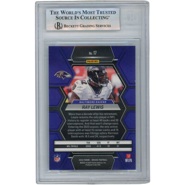 Ray Lewis Autographed 2023 Panini Mosiac #17 Trading Card Beckett 52942