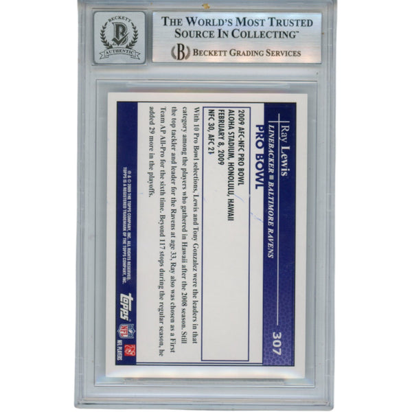 The number in the listing title is just an inventory sku for our records and is not the authentication number. The item pictured is the exact item you will receive, please see photos for condition. This is a Baltimore Ravens 2009 Topps #307 Slabbed Trading Card that was personally autographed by Ray Lewis. Includes a certificate of authenticity / hologram from Beckett Authentication Services (BAS) and Denver Autographs. FREE SHIPPING within the USA on orders over $10!
