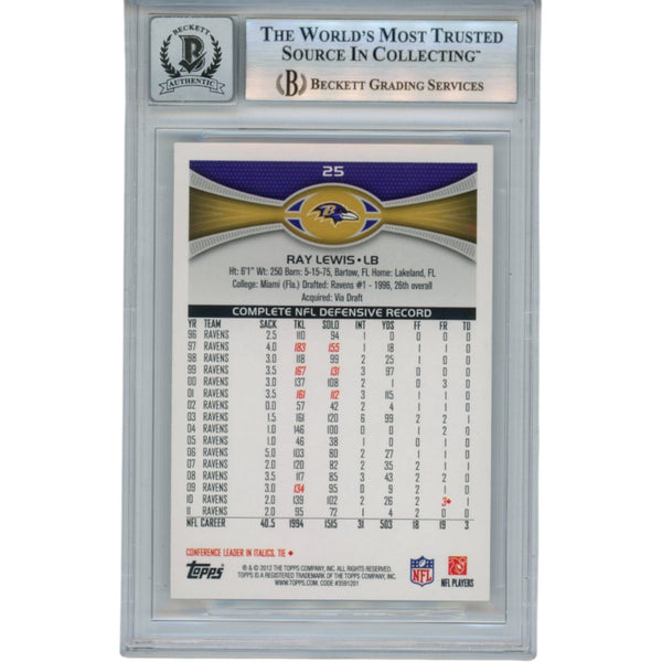 Ray Lewis Autographed/Signed 2012 Topps #25 Trading Card Beckett 52957