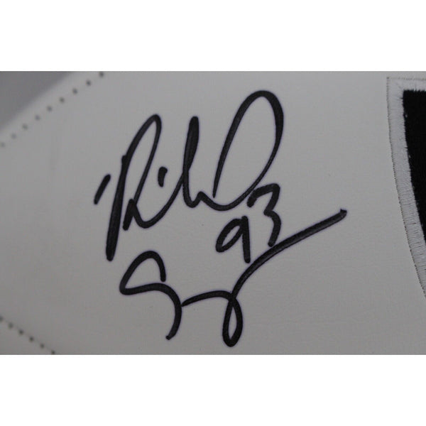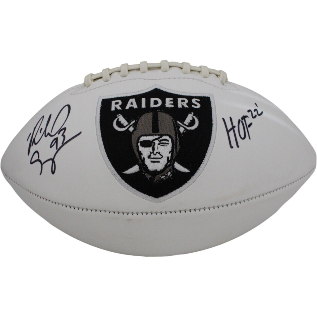 The number in the listing title is just an inventory sku for our records and is not the authentication number. The item pictured is a stock photo unless otherwise noted. This is a Las Vegas Raiders Logo Football that was personally autographed by Richard Seymour with "HOF" inscription. Includes a certificate of authenticity from Beckett Authentication Services (BAS) and Denver Autographs.