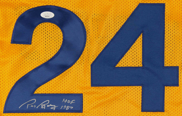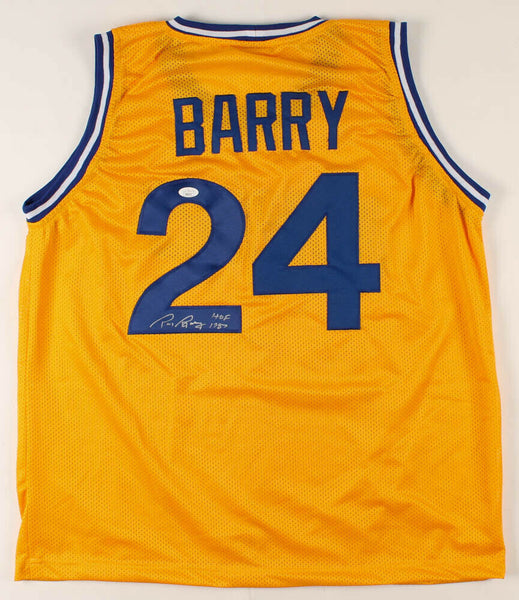 Custom on-court style jersey. Everything is sewn on, size XL. Has been hand-signed and inscribed in silver paint pen by Rick Barry. (HOF) The lot / autograph(s) includes an official James Spence Authentication (JSA) hologram and matching COA for authenticity purposes.Authentication: JSA COA