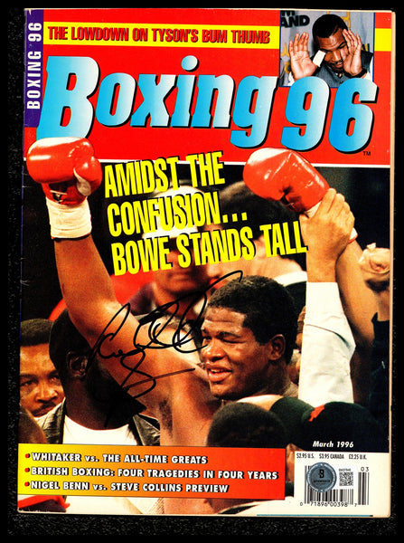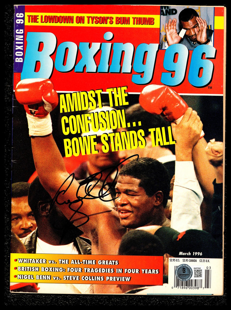 This is a magazine, approximately 7.5x10.5, that has been hand signed by Riddick Bowe. This item has been certified authentic by Beckett Authentication (BAS) and comes with their tamper-proof QR Code hologram.