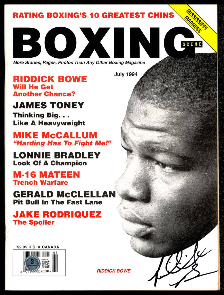 This is a magazine, approximately 8x11, that has been hand signed by Riddick Bowe. This item has been certified authentic by Beckett Authentication (BAS) and comes with their tamper-proof QR Code hologram.