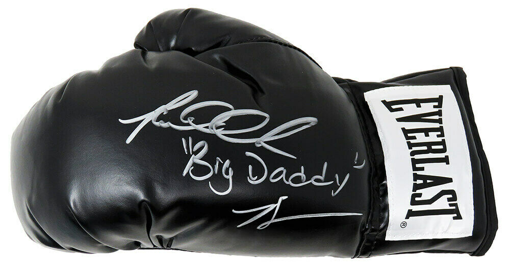 Riddick Bowe signed Everlast black boxing glove with 'Big Daddy' inscription. Item comes with a Schwartz Sports Memorabilia tamper-proof numbered hologram and Certificate of Authenticity which can be verified online.