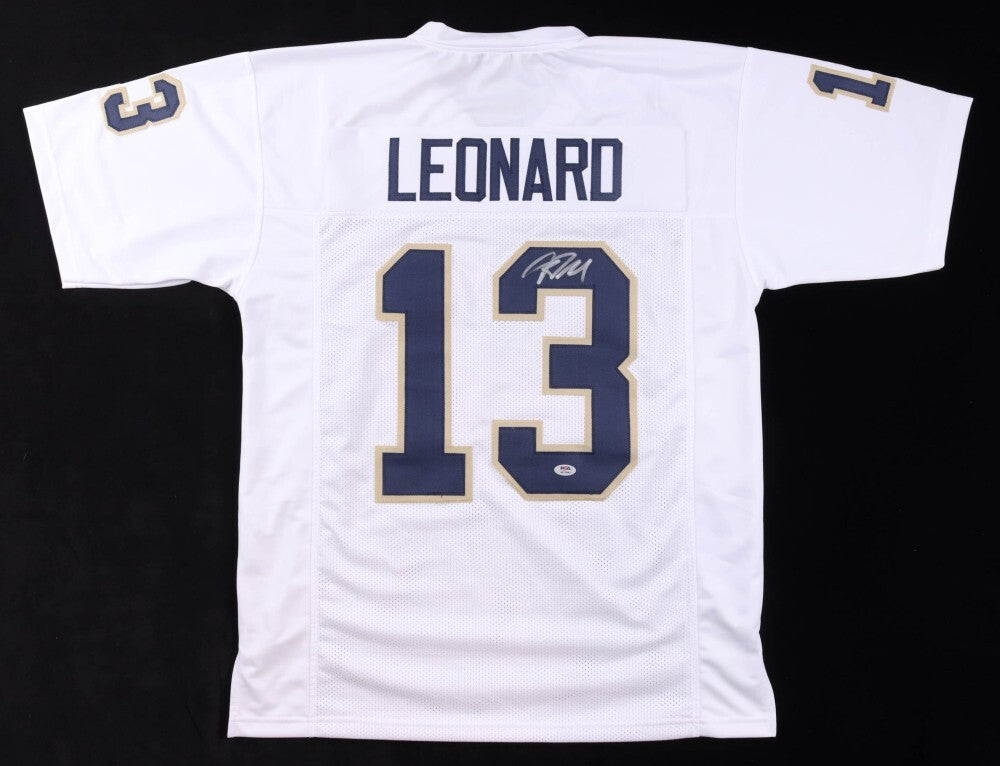 Custom on-field style jersey with everything sewn on, size XL. Hand-signed by Riley Leonard.The autograph(s) includes an official PSA/DNA hologram and QR Code card for authenticity purposes.Authentication: PSA Hologram with QR Code card