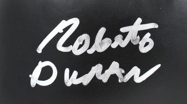 Roberto Duran Autographed Black Everlast Boxing Glove *Left - Beckett W Hologram *Silver This is a Hand Autographed Boxing Glove of Roberto Duran. This is a Black Everlast Boxing Glove. This item has a Beckett Witnessed Authentication, which comes with a Beckett #'ed hologram and a QR code for verification. You can view this item on the Beckett website, it shows when and where the item was signed. It was signed either at a public autograph appearance or a private signing. This is a stock photo of the item. Although you may not receive this exact item, the item you receive is virtually identical and brand new in great shape.