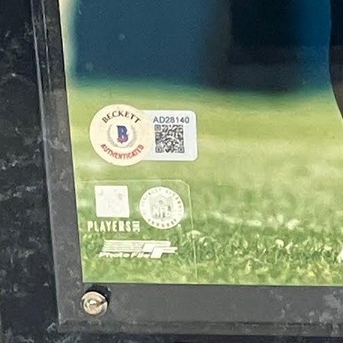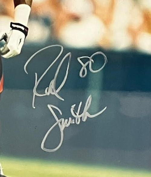 The product is an autographed 8x10 photo of Rod Smith from the Denver Broncos, accompanied by a plaque. The signature has been authenticated by Beckett Authentication Services (BAS), providing assurance of its authenticity. This collectible item would be a valuable addition to any football fan's memorabilia collection, showcasing a piece of NFL history signed by a legendary player from one of the most iconic teams in the league.